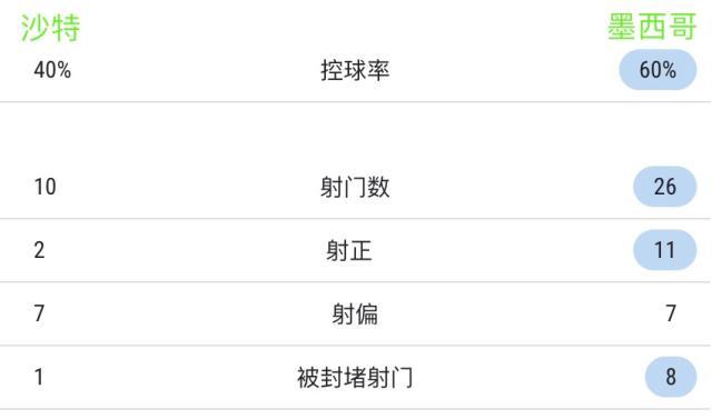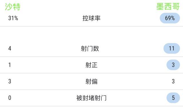 【数说】墨西哥队上半时对沙特射门11脚,是1994年以来他们的最高记录。