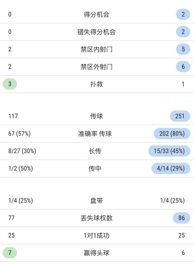 上半场双方技术统计