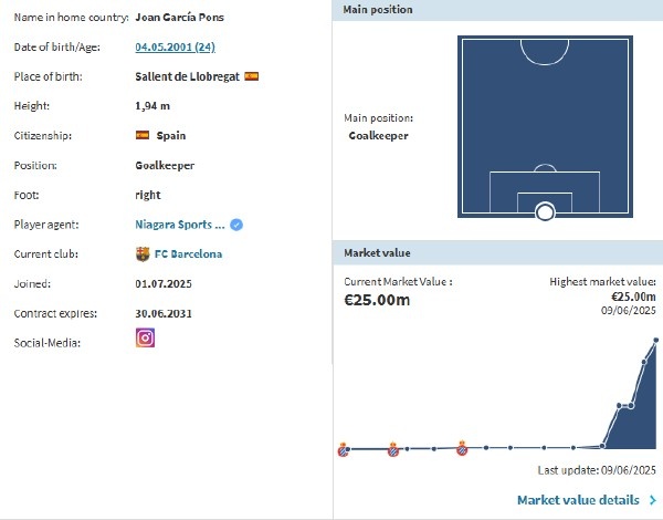 从德转的数据可以看到,巴萨在夏窗仅仅只是花费了2500万欧元买下了门将霍安-加西亚,同时租借了拉什福德。不过需要注意的是,德转评估身价上,巴萨新援的价值超过了9000万欧。